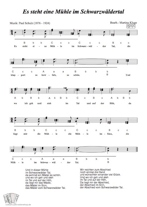 "Die Schwarzwaldmühle" für 3-reihige Harmonika,