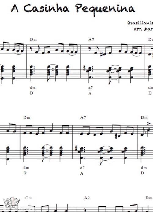 3 Seiten, brasilianische Volksweise in Notenschrift, Arrangement von Martina Kluge