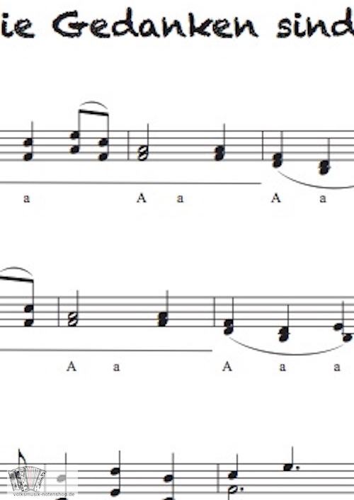 Die Gedanken sind frei, 3 reihig, 1 Seitn, leicht bis mittel Griffschrift im Michlbauer-Stil von da Kluge Martina - Oanzlausgab'