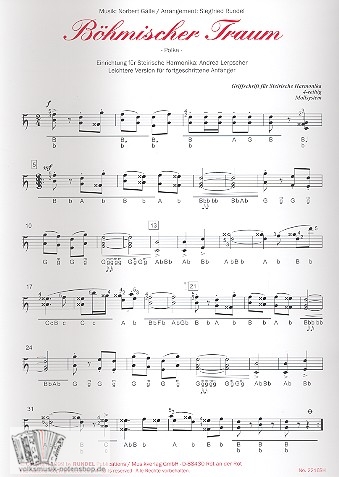 Böhmischer Traum in Griffschrift für Steirische Harmonika,Einzelausgabe in zwei Versionen(leichter für fortgeschrittene Anfänger, schwer für Fortgeschrittene)