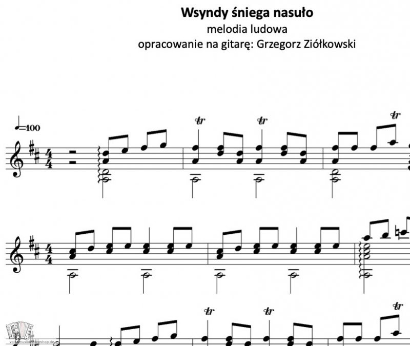 1 Seite, Notenschrift, Bearbeitung für Gitarre: Grzegorz Ziółkowski