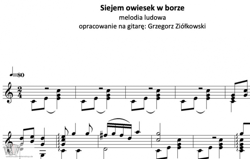 Siejem owiesek w borze - polnische Voiksmusioa Seitn, Notenschrift, Bearbeitung für Gitarr': Grzegorz Ziółkowski