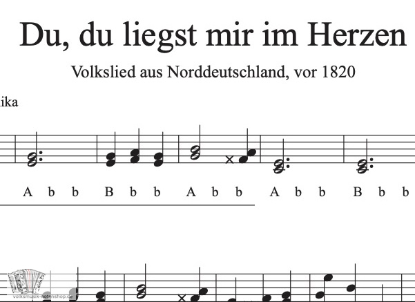 Du, Du, liegt mir im Herzen - 2-stimmig gesetzt, mit Liedtext