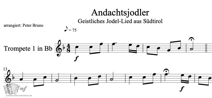 Andachtsjodler für Blechbläser Quartett - zum Download