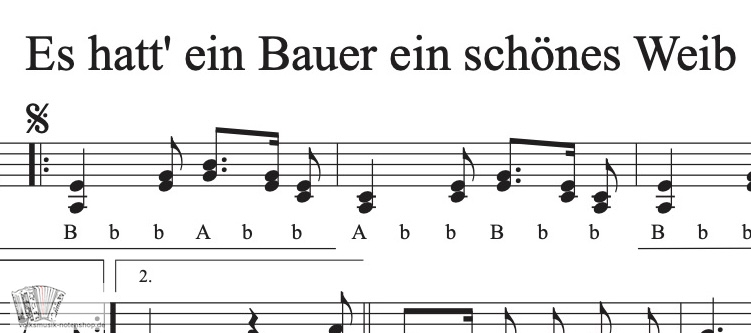 Es hatt' ein Bauer ein schönes Weib, 2-stimmig mit Liedtext