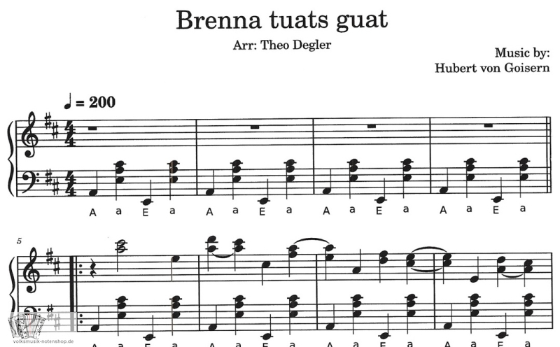 Brenna tuats guad - von Hubert v. Goisern - Arr. v. Theo Degler für Akkordeon mit Harmonieangaben