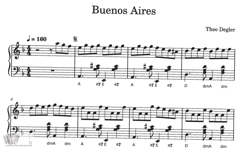 Buenos Aires v. Theo Degler,  für Akkordeon mit Harmonieangaben