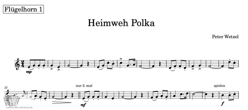 Heimweh-Polka - eine schwungvolle Polka von Peter WetzelErhältlich für Blasorchester, Böhmische Besetzung und Kleine Besetzung.