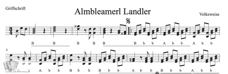 Almbleamerl Landler - Griffschrift zum Download