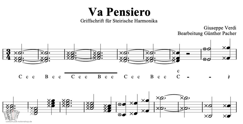 Va Pensiero (Nabucco) v. Guiseppe Verdi - in Griffschrift, bearb. v. Pacher Günther