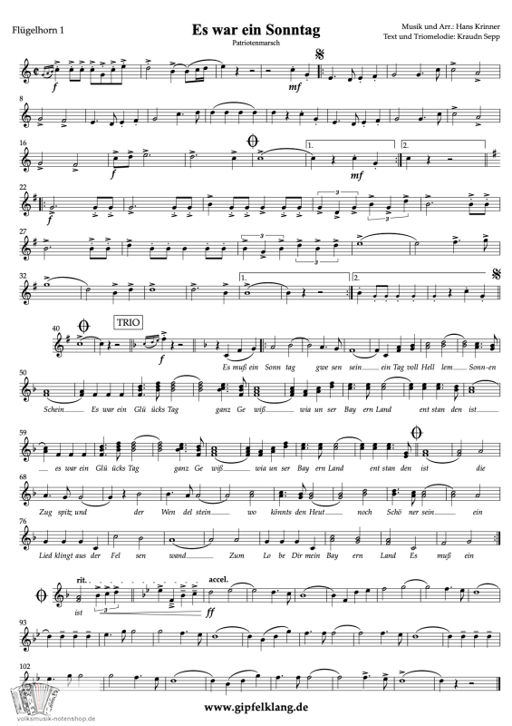 "Es war ein Sonntag" - Marsch von Hans Krinner für Blasorchester, zum Download.