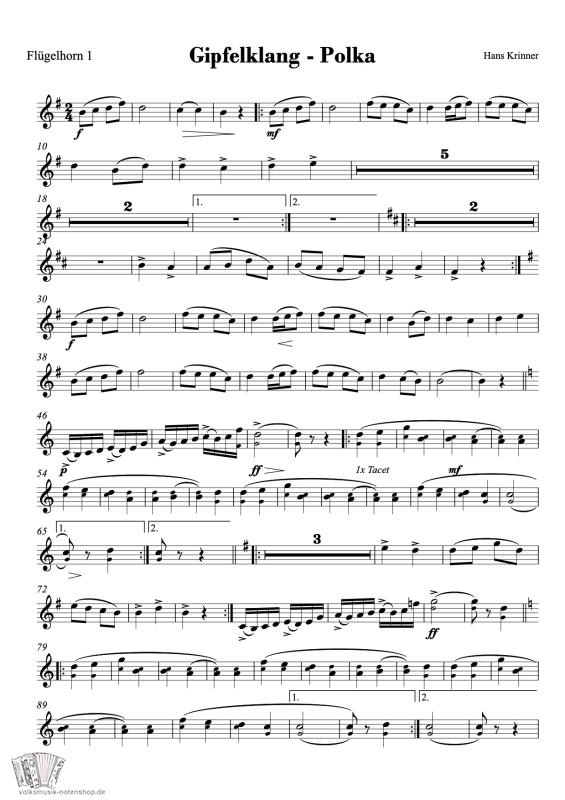 "Gipfelklang Polka" - Moderne Polka vom Krinner Hans, für a große Besetzung, mit scheene Melodien und am Ohrenschmaustrio, zum Download.