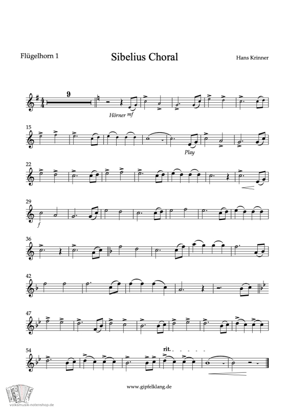 "Sibelius Choral" - von Hans Krinner für Blasorchester, zum Download.