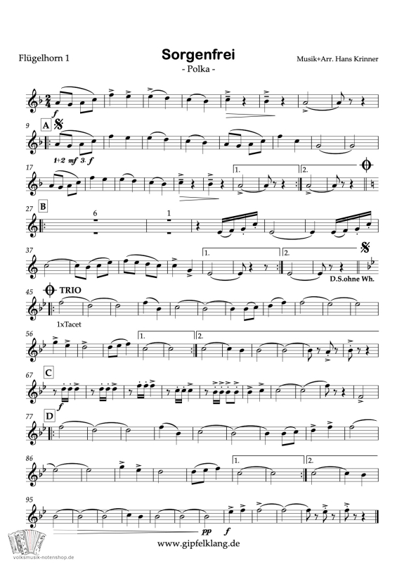 "Sorgenfrei Polka" - von Hans Krinner für kleine Besetzung, zum Download.