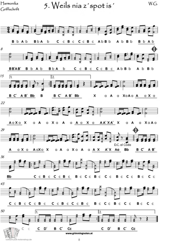 Weils nia zspot is - 10 Harmonikastücke in Griffschrift im einfachen Schwierigkeitsgrad für junge und junggebliebene MusikantInnen