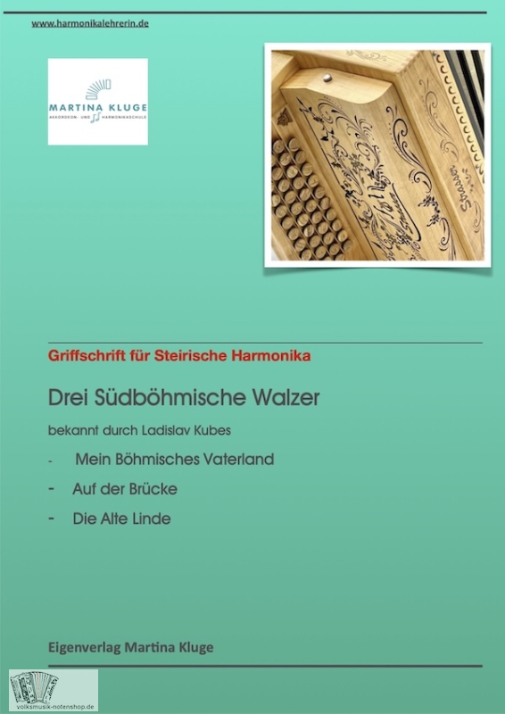 3 Böhmische Walzer von Ladislav Kubes, arr. von Martina Kluge in Griffschrift für 4-reihige Steirische Harmonika.